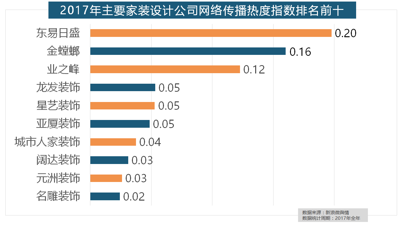 伴跟着我国度拆市场的繁荣,一批具有必然规模的家拆设想公司也纷纷出现。据新浪微舆情对2017年我国次要家拆设想公司大数据阐发显示,东易日盛正在过去的一年中收集热度指数最高,金螳螂、业之峰、龙发粉饰、星艺粉饰紧随其后。此外,名雕粉饰、城市人家粉饰、阔达粉饰、元洲粉饰也榜上出名,位列年度家拆设想公司热度排行榜六至十位。